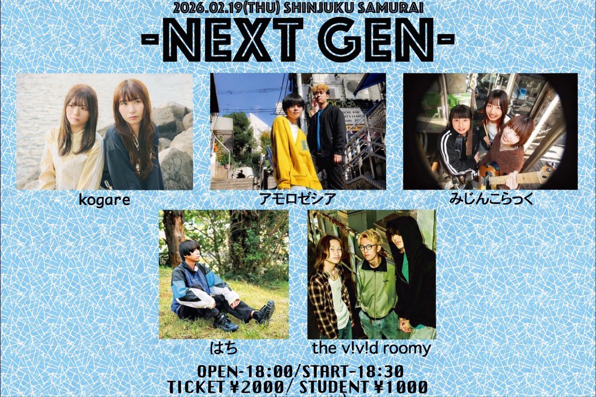 ADV./DOOR 一般¥2,000/学割¥1,000 ※入場時1Drink¥600別
