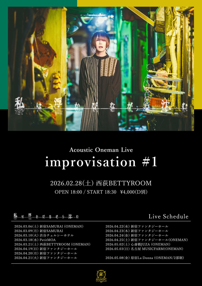 ADV./DOOR ¥4,000/¥4,500/小学生以上高校生未満・60歳以上の方¥1,000(要身分証) ※入場時1Drink¥700別